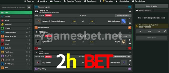 O 2h bet oferece uma grande seleção de opções de apostas em e-sports com probabilidades competitivas